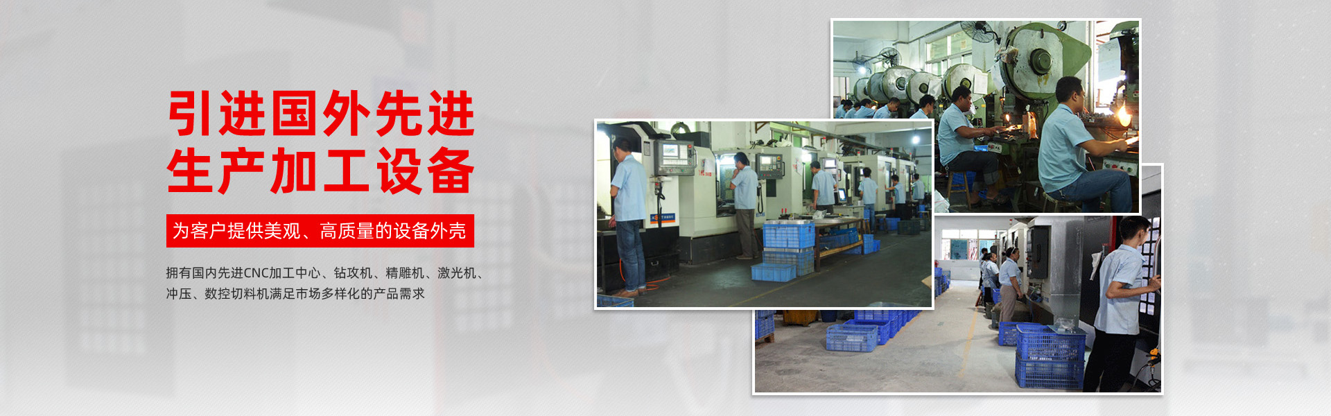 生產(chǎn)設(shè)備采用國(guó)內(nèi)CNC加工中心,鉆攻機(jī),精雕機(jī),激光機(jī),滿足市場(chǎng)多樣化的產(chǎn)品需求!